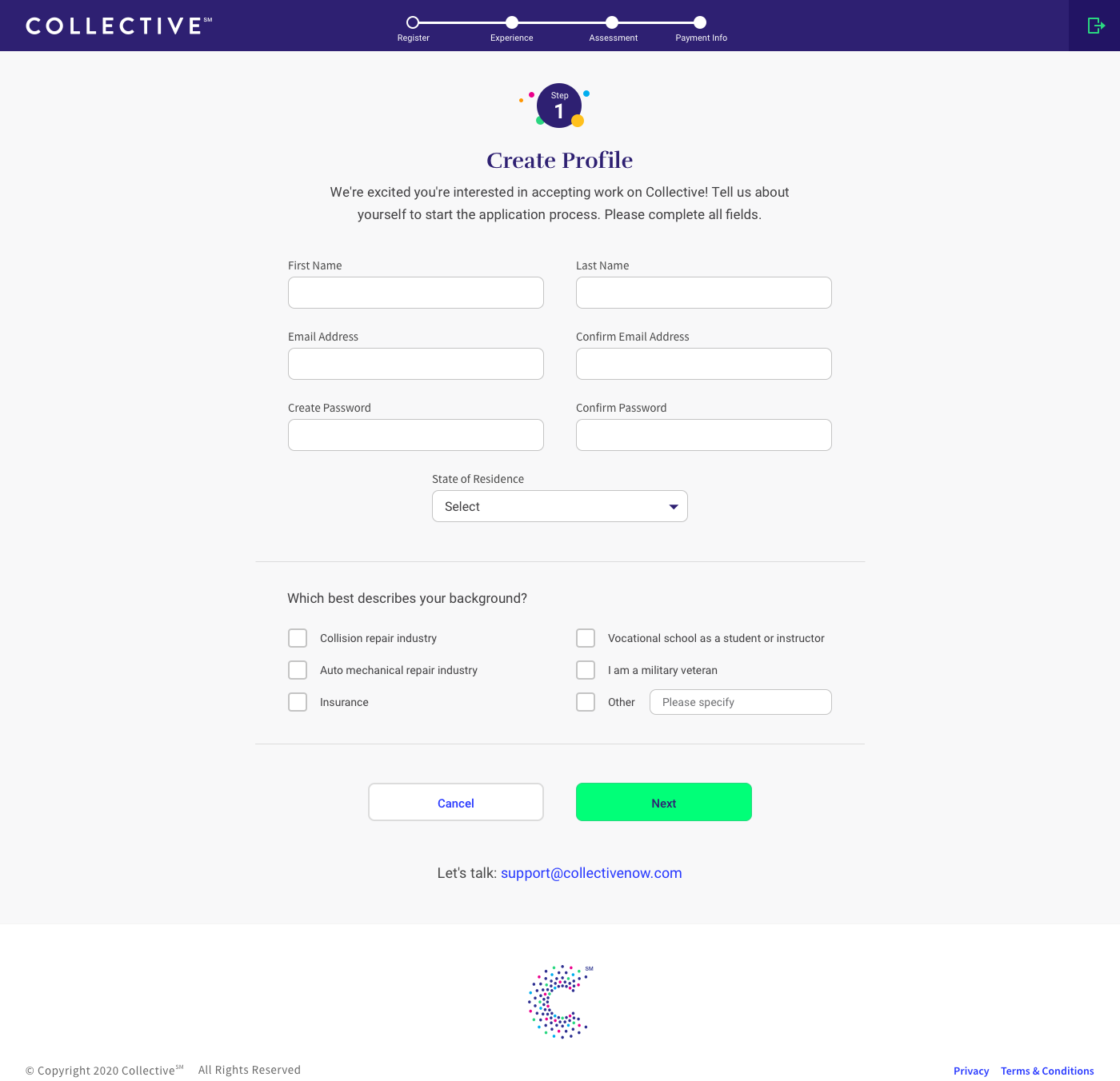 Here is the overall process flows and screens for registration and the completion of work process on Collective. I originally created this to help onboard a new team member along with an Invision prototype of the application for user testing.