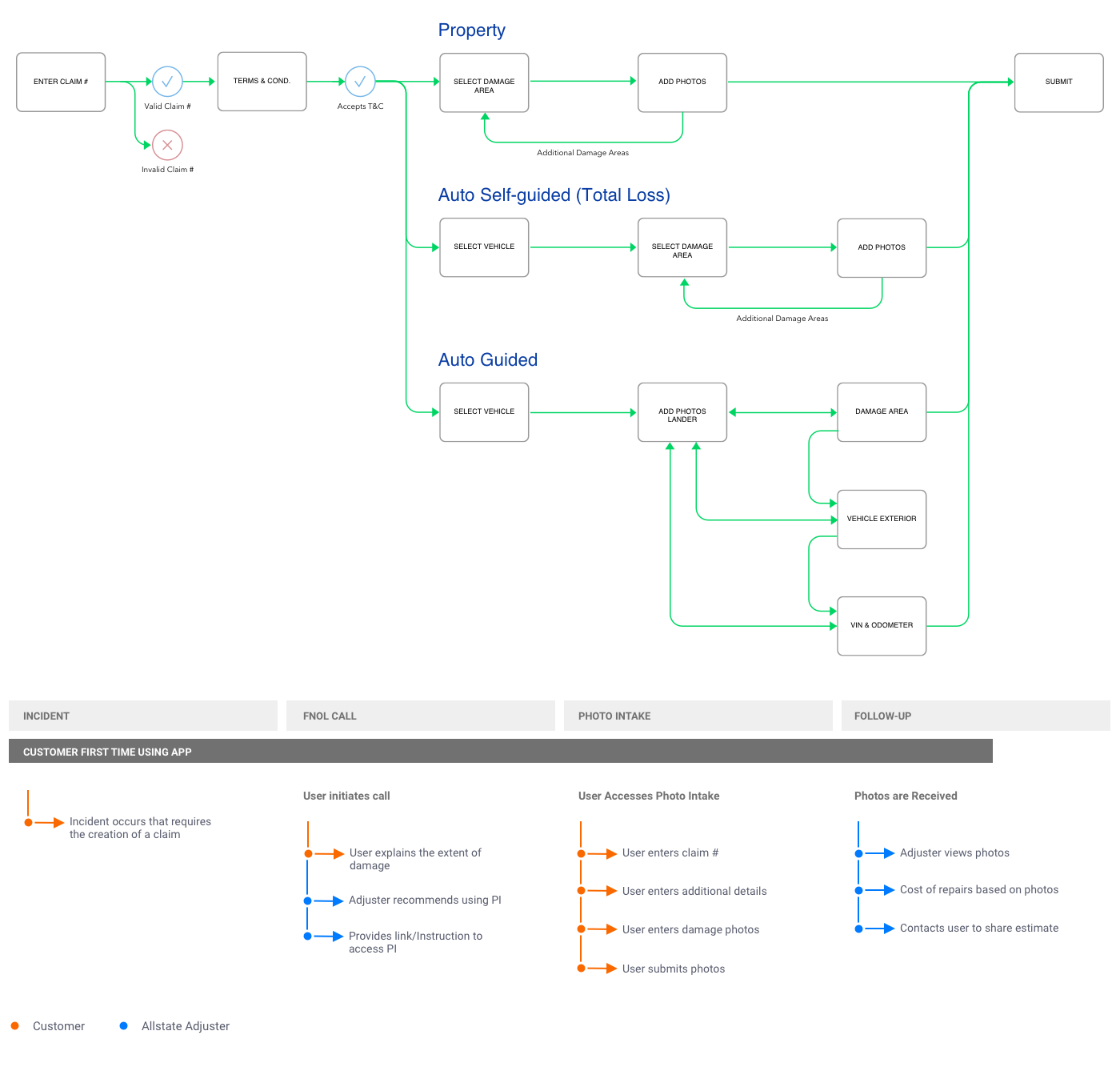 My first product at Allstate was Photo Intake, a web application designed for mobile, that allowed customers to take and submit damage photos to have their claims completed faster (and save the company money).