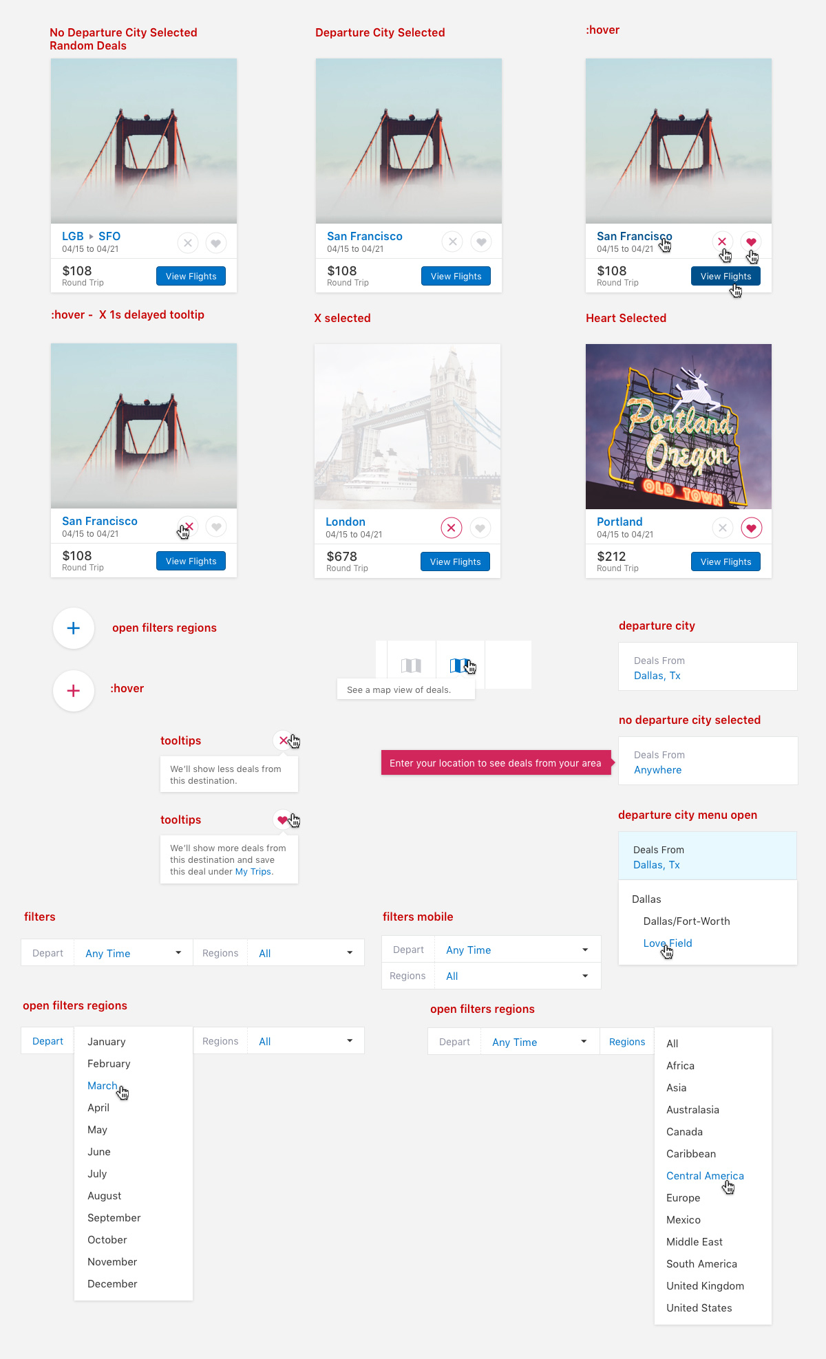 Some more styles showing the interactions for the deals. Users will be able to favorite certain destinations which will appear more frequently on the deals page and within email being sent.